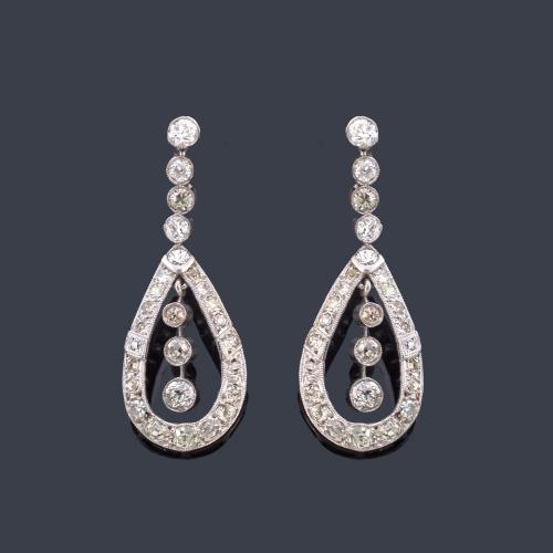Pendientes largos estilo 'art decó' con diamantes talla antigua y rosa de aprox. 1,44 ct en total.