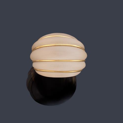 Anillo con pieza de cristal de roca gallonado con hilos de oro amarillo. Años '70.