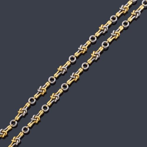 Cadena larga con motivos de nudos en oro amarillo de 18K y acero.