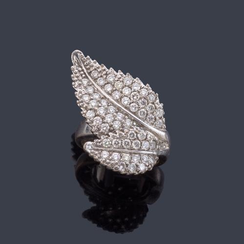 Anillo con diseño hoja con cuajado de brillantes de aprox. 1,40 ct en total.