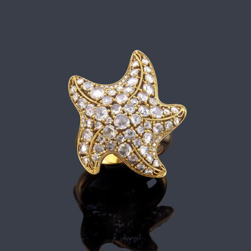Anillo con diseño de estrella de mar cuajada de diamantes talla holandesa de aprox. 2,35 ct en total.