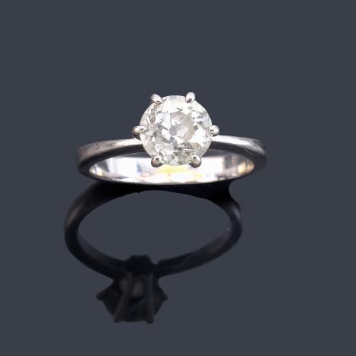 Anillo con diamante talla antigua de aprox. 1,01 ct en montura de oro blanco de 18K.