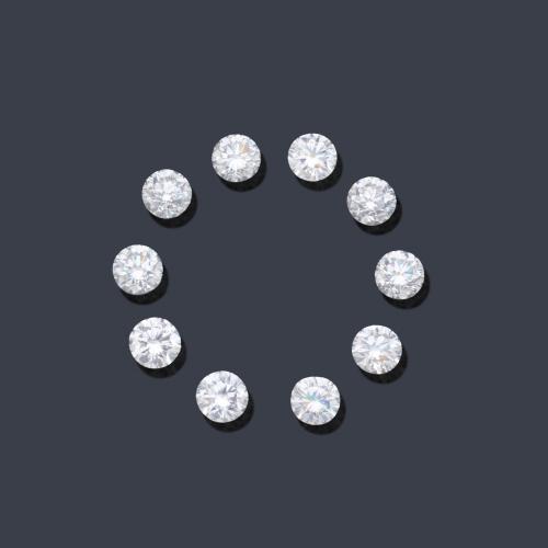 Lote con diez brillantes de aprox. 1,08 ct en total.