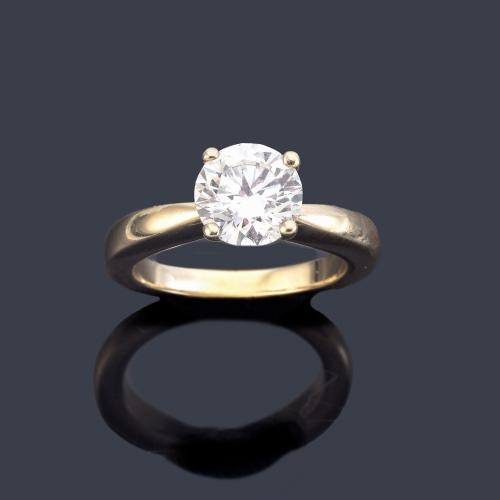 Solitario con brillante de aprox. 1,71 ct en montura de oro blanco de 18K. Certificado South African Ideal Cut.