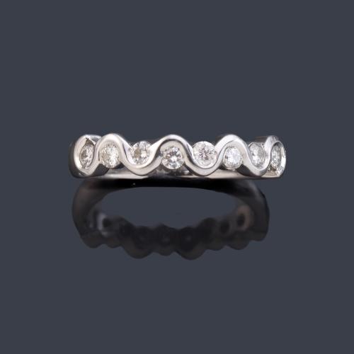 Lote 2335: Media alianza con banda ondulada de brillantes de aprox. 0,48 ct en total.