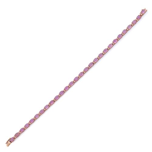 Pulsera rivière con zafiros rosas talla oval en oro rosa de 14K.