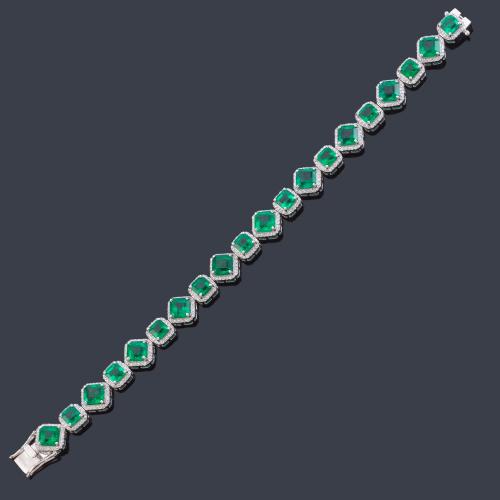 Pulsera con esmeraldas talla esmeralda de aprox. 17,35 ct con orla de brillantes de aprox. 1,75 ct en total.