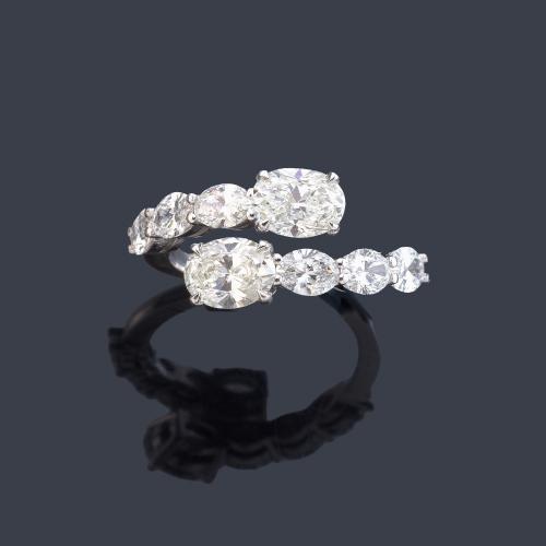 Anillo 'Tú y Yo' con dos diamantes talla oval de mayor tamaño de aprox. 1,46 ct y resto de diamantes de aprox. 1,20 ct en total.