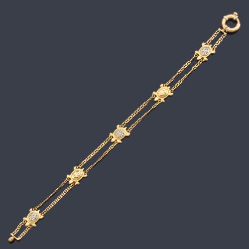 Pulsera con motivos de cinco tortugas, tres de ellas con pavé de brillantes.
