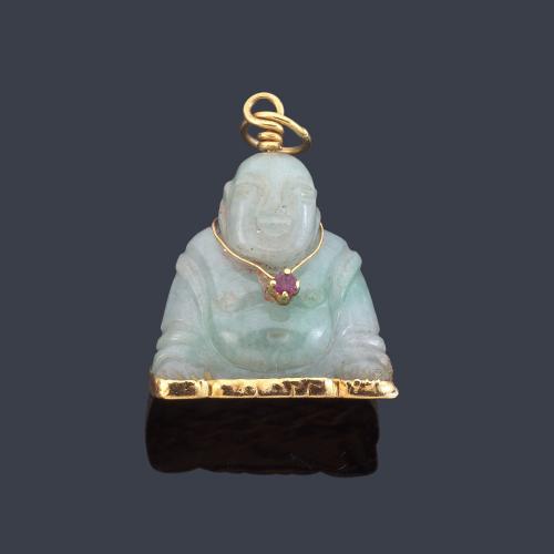 Colgante en forma de Buda realizado en jade tallado con detalle de collar con rubí.