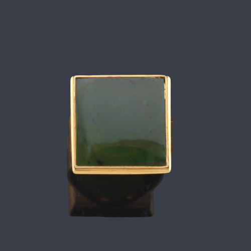 Anillo con placa de jade nefrita en montura de oro amarillo de 18K. Años '70.