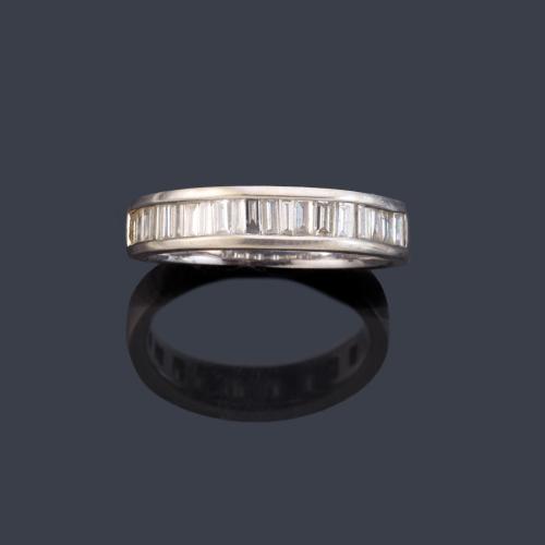 Media alianza con banda de diamantes talla baguette de aprox. 1,40 ct en total.