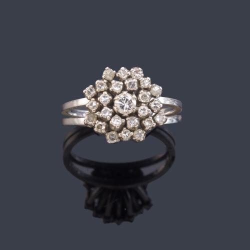 Anillo rosetón con brillantes de aprox. 0,80 ct en total en montura de oro blanco de 18K.