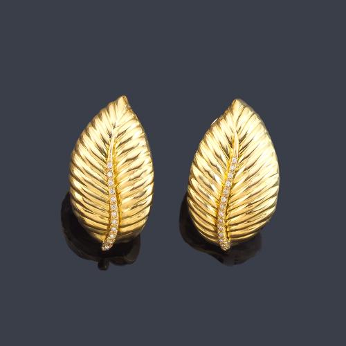 Pendientes cortos con diseño de hoja y banda de brillantes en disminución.