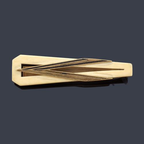 Pasador de corbata con diseño geométrico sobre montura de oro amarillo de 18K. Años '70.