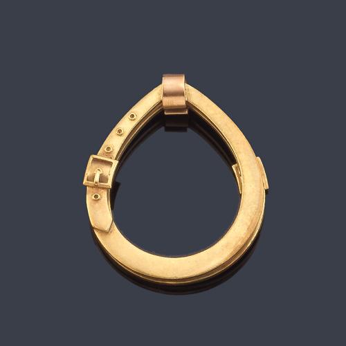 Llavero - portabilletes con diseño de estribo realizado en oro amarillo de 18K.