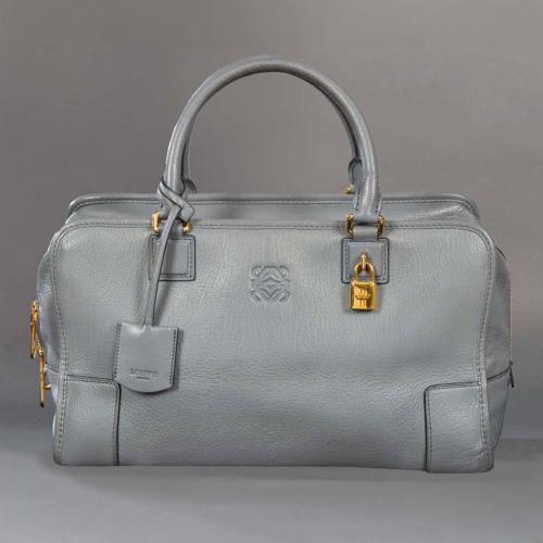 Bolso Amazona 36 realizado en piel de vacuno color gris con los remaches, cierres y candado bañados en oro.