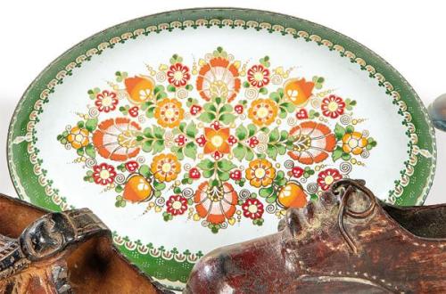 Lote 109: Bandeja oval de esmalte y vaso de cristal "animal print"