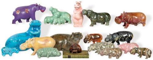 Colección de 64 hipopótamos en diversos materiales y tamaños