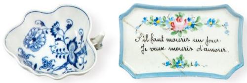 Lote 120: Cenicero de porcelana en forma de hoja sobre pequeña fuente (restaurada).