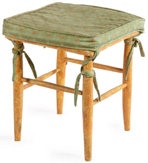 Lote 126: Banqueta en madera pintada en estuco con cojín de tela.