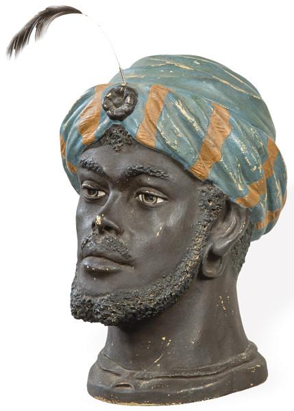 Lote 128: Tabaquera de cerámica pintada en forma de africano, Francia pp. S. XX