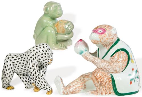 Lote 195: Conjunto de dos monos y un orangután. Uno de ellos en porcelana de Mottahedeh.