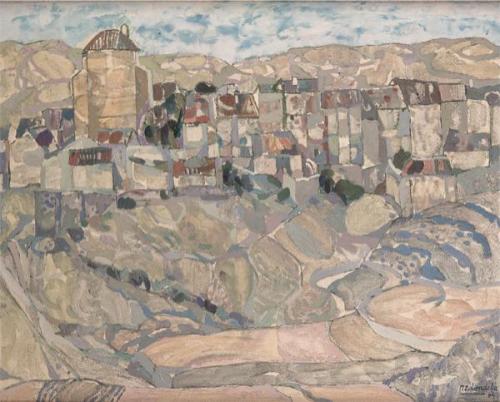 Lote 217: AGUSTÍN REDONDELA - Paisaje de la Alcarria. (Pueblo de Guadalajara)