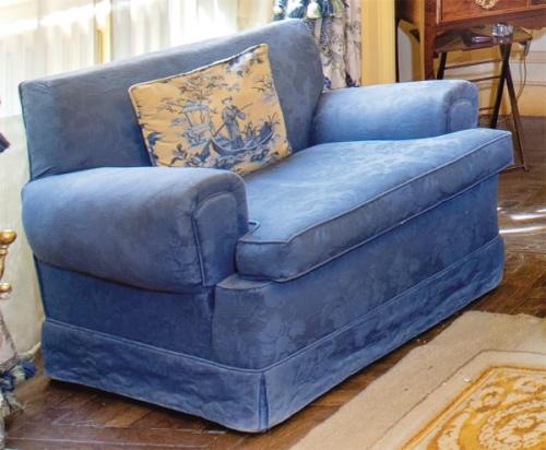Lote 235: Pareja de sillones de tela adamascada azul. Siglo XX