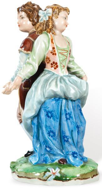 Pareja de jóvenes en porcelana pintada y esmaltada de Hispania.