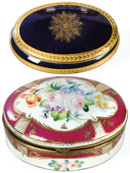 Dos cajas de porcelana. Una de ellas en azul cobalto y oro de Limoges.