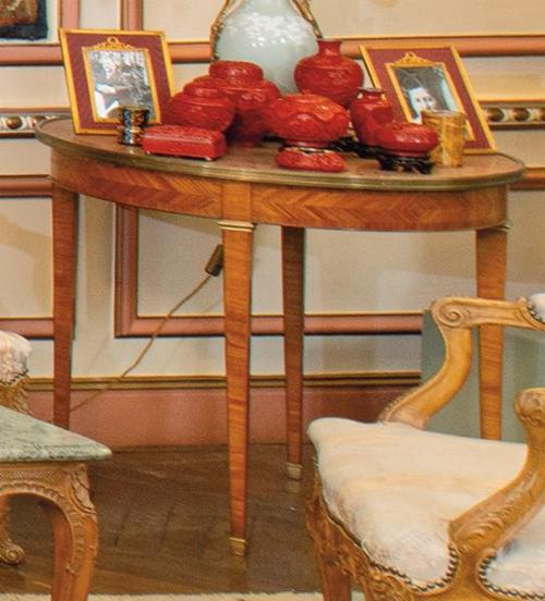 Lote 352: Mesa auxiliar estilo Directorio en madera de palo de rosa de tapa redonda, con monturas de latón. Siglo XX