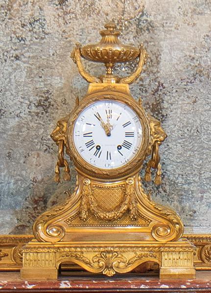 Lote 355: Reloj de sobremesa con guarnición de candelabros Napoleón III estilo Luis XVI en bronce. Esfera firmada. Con maquinaria tipo "París" con sonería de horas y medias.