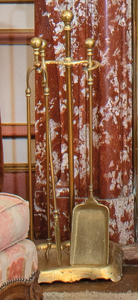 Lote 359: Utiles de chimenea en bronce. Formado por fuelle, pala, atizador y pinzas.