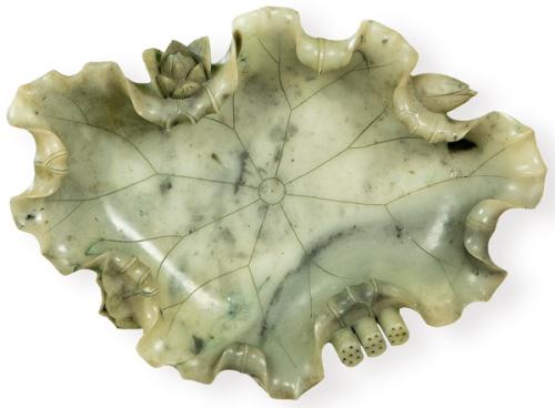 Centro de mesa de jade chino tallado en forma de hoja