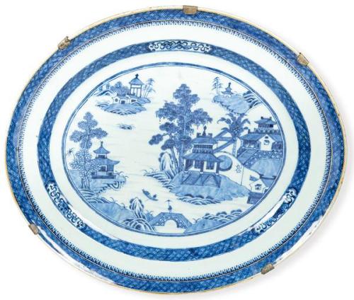 Lote 378: Bandeja oval de porcelana de Compañia de Indias azul y blanca, Dinastia Qing, época de Quianlong (1736- 1795)
