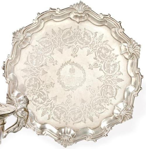 Lote 392: Salvilla de plata inglesa punzonada Ley Sterling de William Peaston, Londres 1752.