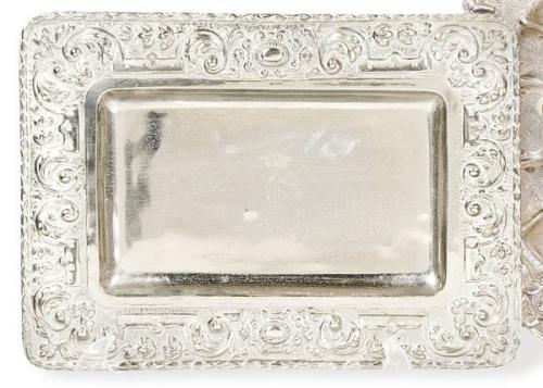 Lote 393: Bandeja rectangular posiblemente de plata con marca C&A
