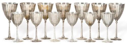 Lote 458: Lote de copas de agua y vino de metal plateado
