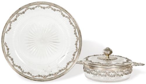 Lote 469: Terrina con dos asas y plato en cristal y plata francesa con marca de exportación en vigor de 1839 a 1879.