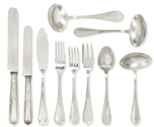 Cubiertos de metal plateado de Meneses con decoración de fasces encitandos sobre rayado.