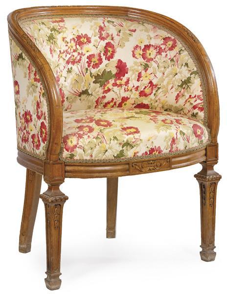 Butaca estilo Luis XVI en madera de nogal tallada. Siglo XX.