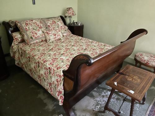 Cama fernandina en madera de caoba con decoración en marquetería de motivos vegetales. España, primer tercio del siglo XIX.