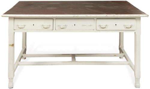 Mesa de cocina en madera de pino blanco con tapa de mármol.