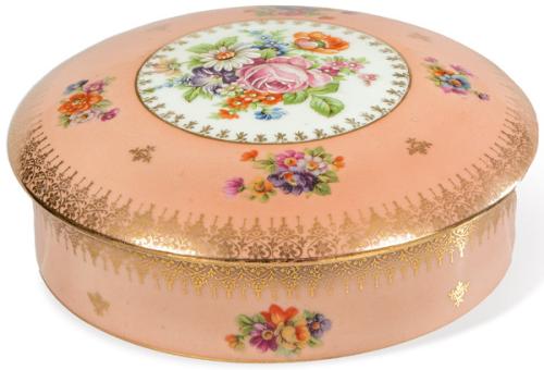 Lote 565: Caja en porcelana rosa de Limoges con motivos de flores.
