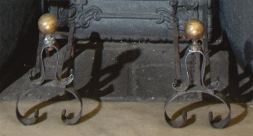 Lote 84: Pareja de morillo de bronce y hierro forjado con remate de bola (una de ellas rota)