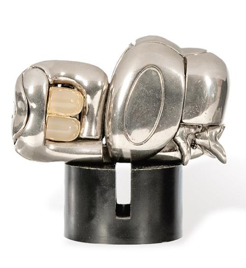 Escultura en Zamac niquelado desmontable compuesta de 25 elementos, de los cuales, uno es una sortija con dos piedras.