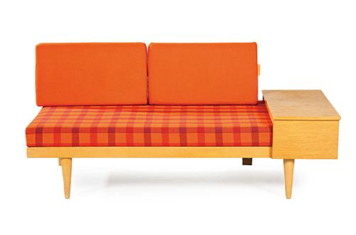 Sofá de dos plazas convertible en cama, Daybed. Estructura de madera de teca, combinada con tres piezas acolchadas y tapizadas, cumple a la perfección su función como sofá. La cajonera abatible permite múltiples configuraciones, transformándose en cama o chaise longue según se necesite. Este diseño noruego destaca por su pureza, sencillez y practicidad, ofreciendo comodidad tanto para vivir como para dormir.
