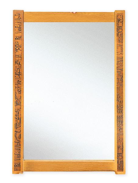 Marco de espejo en madera de teca, con molduras rectas, decoradas con láminas de cobre repujado.