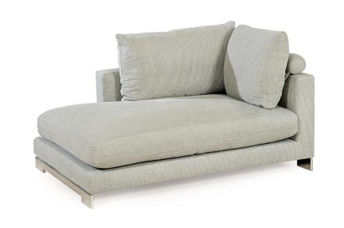 Chaise longue modelo con respaldo ajustable, permite 3 opciones de asiento. Con estructura de madera maciza de abeto con correas elásticas. Cojín de poliuretano de alta capacidad tapizado en tela y patas de metal brillante. y tapizado en tela.